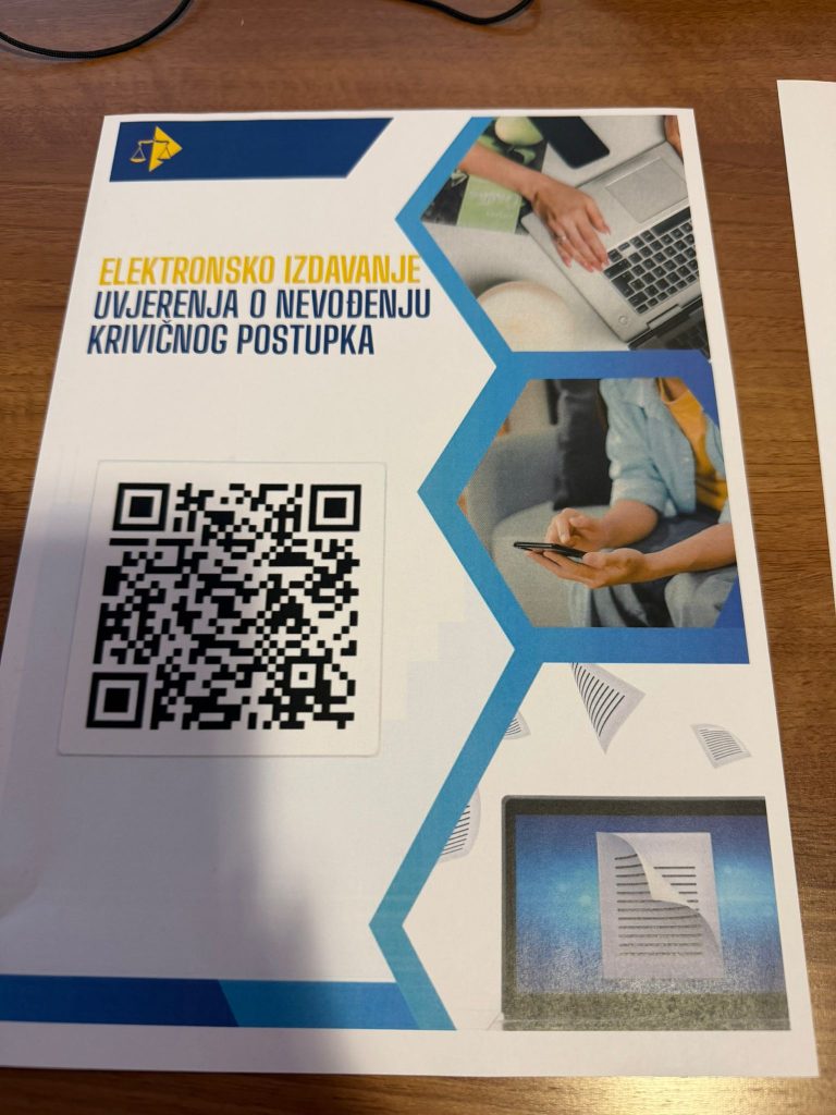 Servis „Online izdavanje uvjerenja o nevođenju krivičnog postupka“ omogućava građanima Bosne i Hercegovine pribavljanje uvjerenja o nevođenju krivičnog postupka koje izdaju prvostepeni sudovi u Bosni i Hercegovini. Servis je, uz podršku Evropske unije, razvijen u saradnji Visokog sudskog i tužilačkog vijeća Bosne i Hercegovine (VSTV BiH) sa Agencijom za identifikacione dokumente, evidenciju i razmjenu podataka Bosna i Hercegovina (IDDEEA) kao pilot projekat koji ima za cilj provjeriti mogućnosti svih relevantnih institucija i organizacija da podrže procese kolaboracije stranaka i pravosudnih institucija što je jedan od glavnih strateških ciljeva VSTV-a BiH u oblasti informaciono-komunikacionih tehnologija. Pilot sudovi koji učestvuju u ovom projektu su: Općinski sud u Bihaću, Općinski sud u Mostaru, Općinski sud u Sarajevu i Općinski sud u Širokom Brijegu.